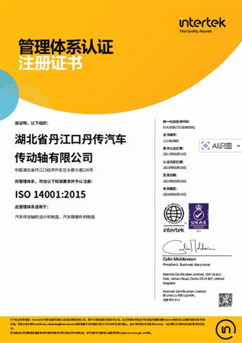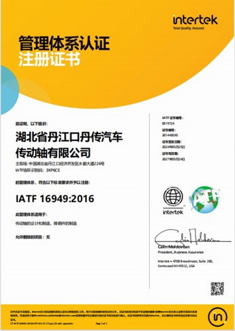 湖北省丹江口丹传汽车传动轴有限公司Auto parts, rail transit parts, etc. |